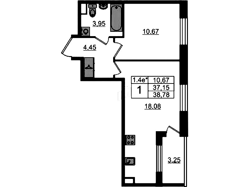 - Площадь37,15 м2
