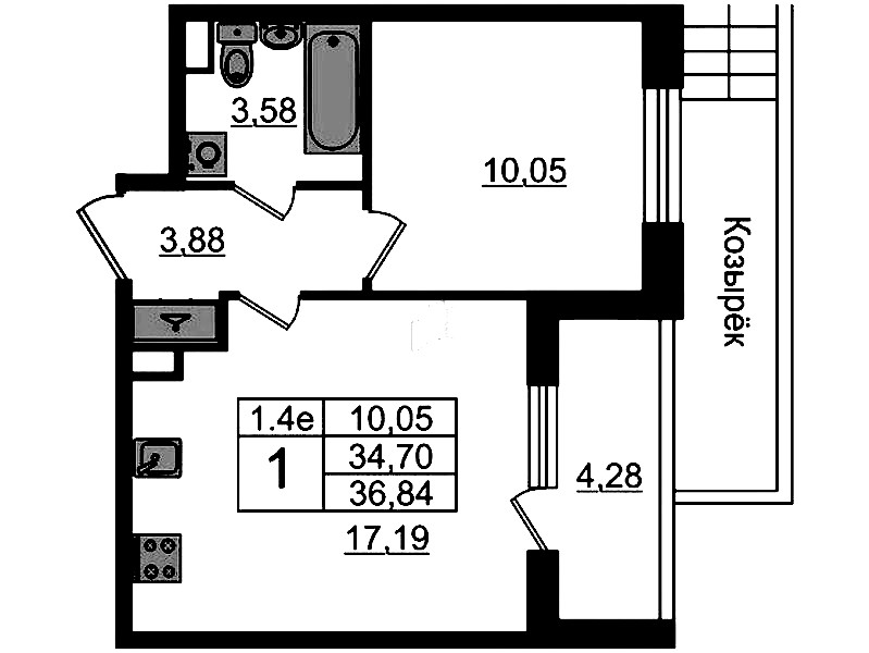 • Площадь кухни17,19 м2