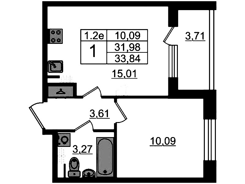 • Площадь кухни15,01 м2