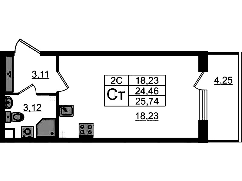 Квартира-студия на 3-ем этаже 24,46 кв.м