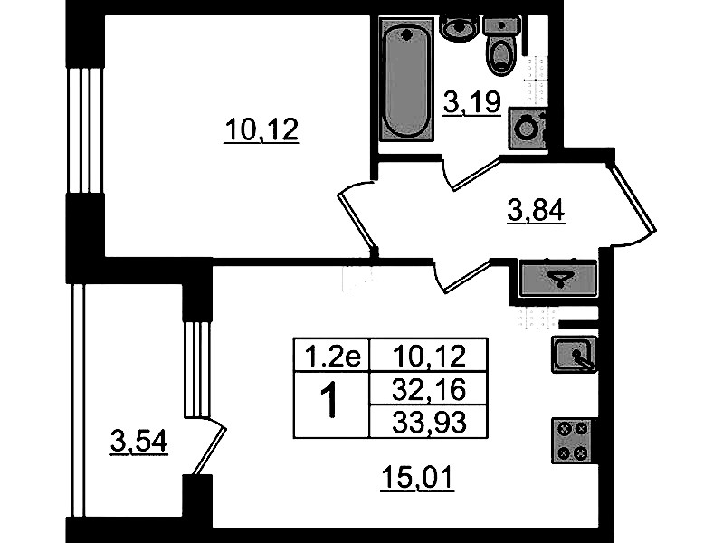 Однокомнатная квартира на 5-ом этаже 32,16 кв.м