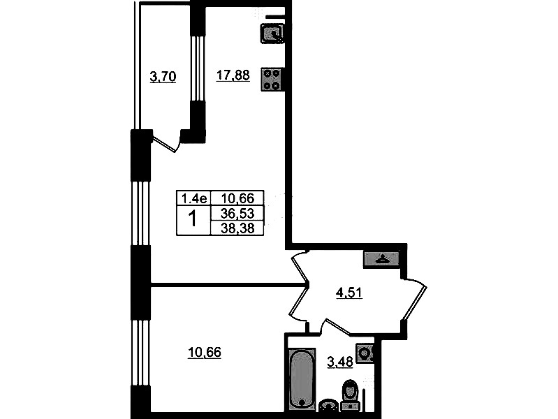 - Площадь36,53 м2