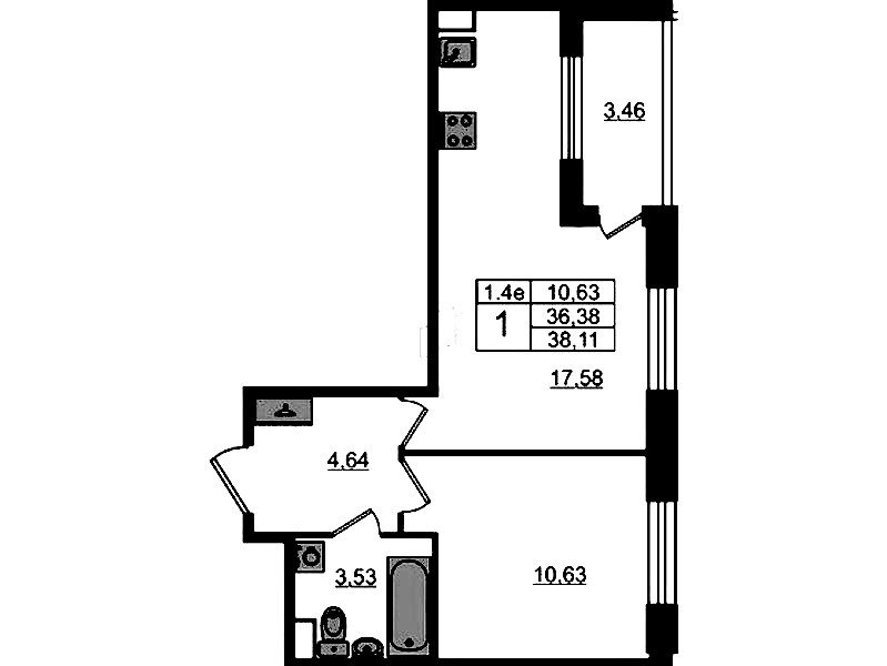 - Площадь кухни17,58 м2