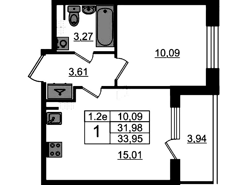 Однокомнатная квартира на 5-ом этаже 31,98 кв.м