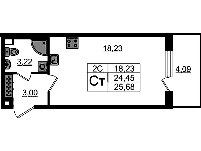 - Площадь24,45 м2