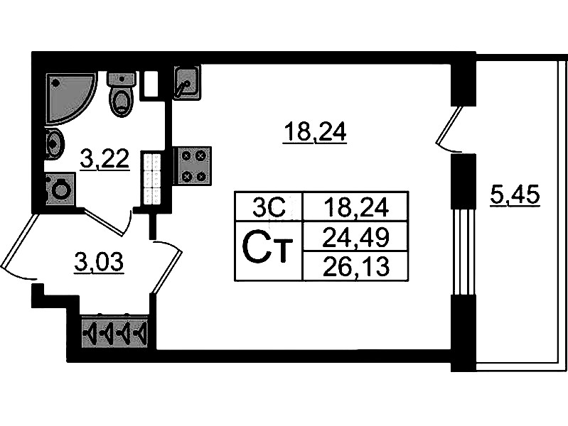 - Площадь24,49 м2