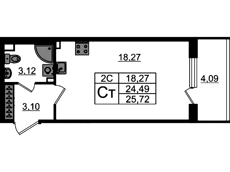 - Площадь24,49 м2