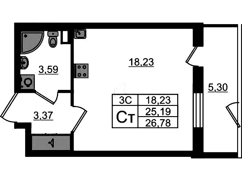 - Площадь25,19 м2
