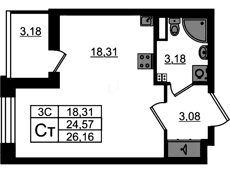 • Площадь24,57 м2