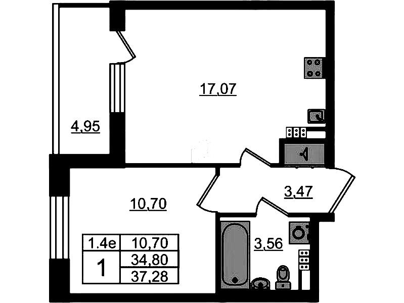- Площадь кухни17,07 м2