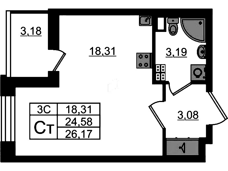 - Площадь24,58 м2