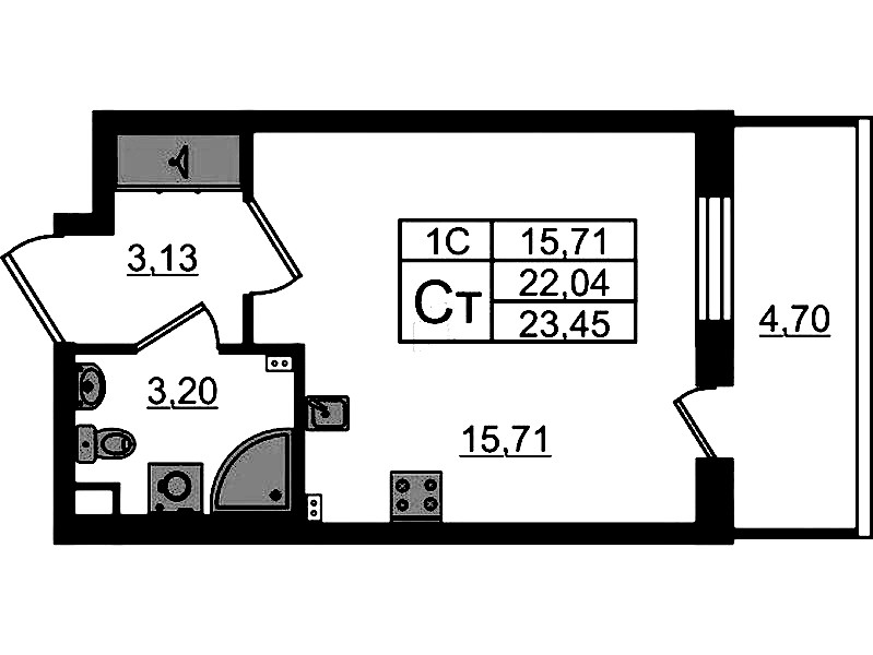 - Площадь22,04 м2