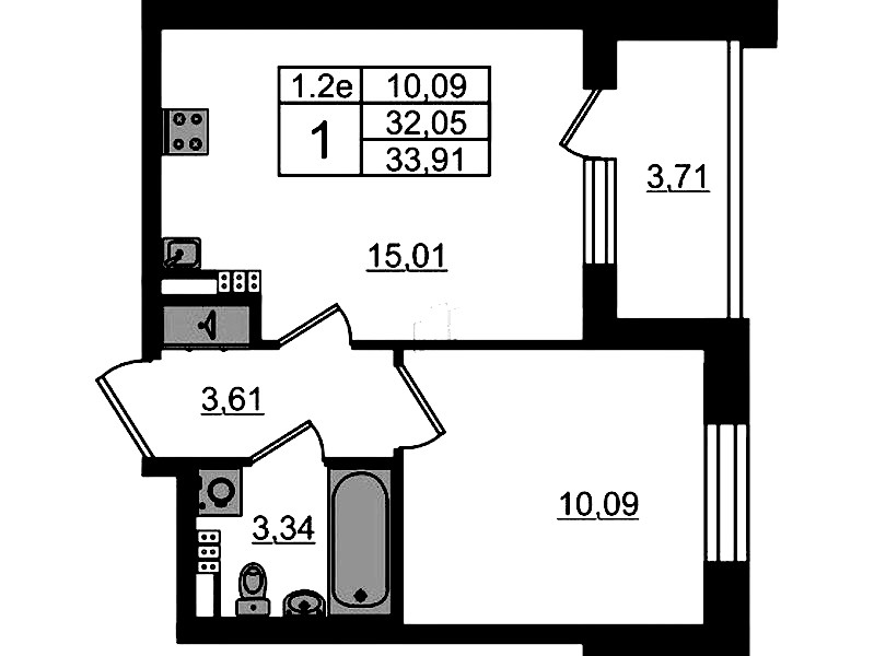 - Площадь кухни15,01 м2