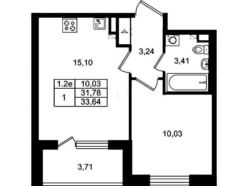 Однокомнатная квартира на 2-ом этаже 31,78 кв.м