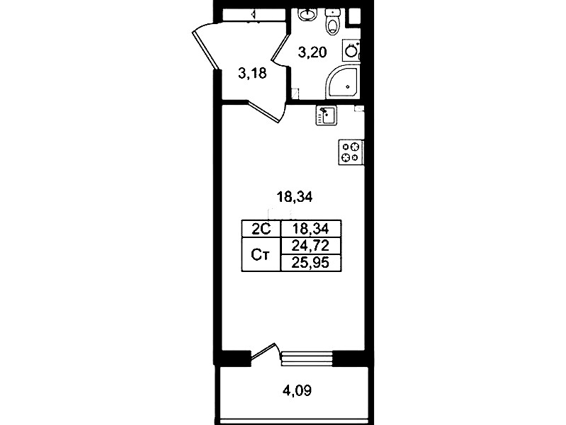 Квартира-студия на 2-ом этаже 24,72 кв.м