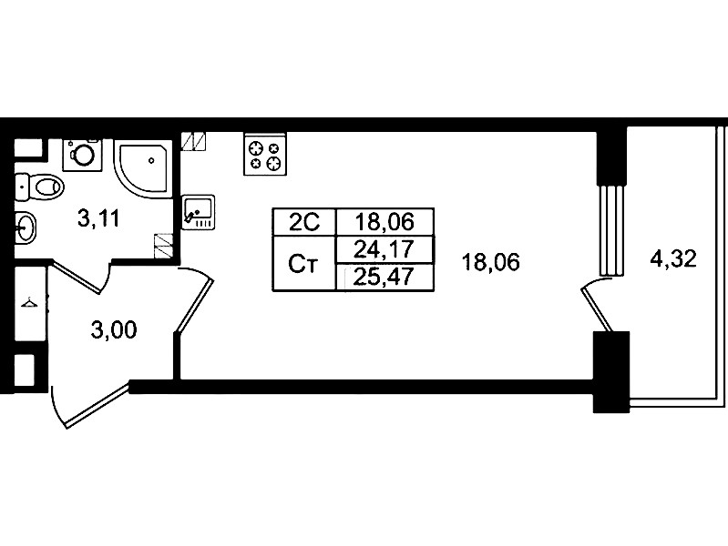 - Площадь24,17 м2