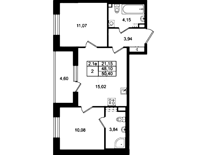 - Площадь кухни15,02 м2