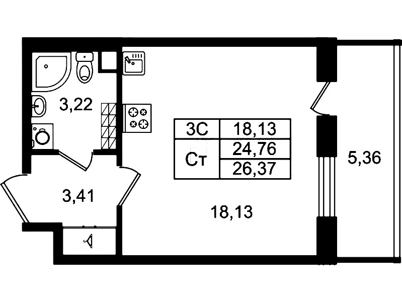 - Площадь24,76 м2