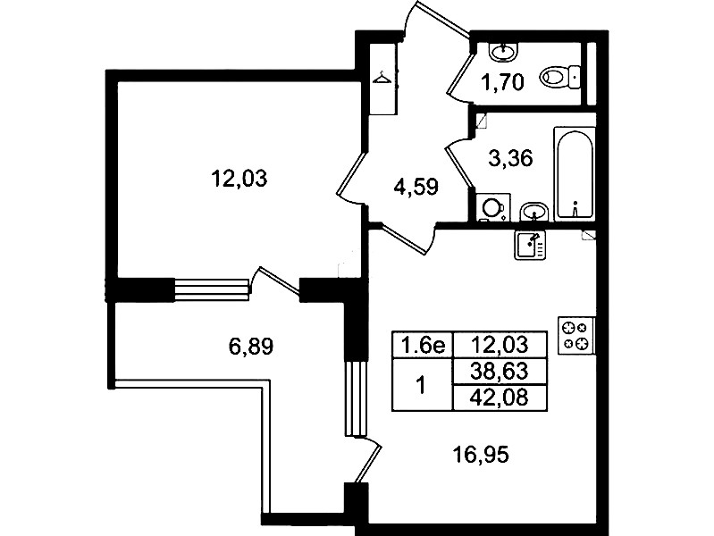 • Площадь38,63 м2
