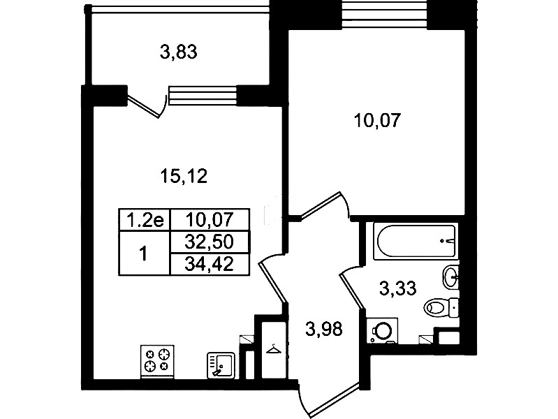• Площадь кухни15,12 м2
