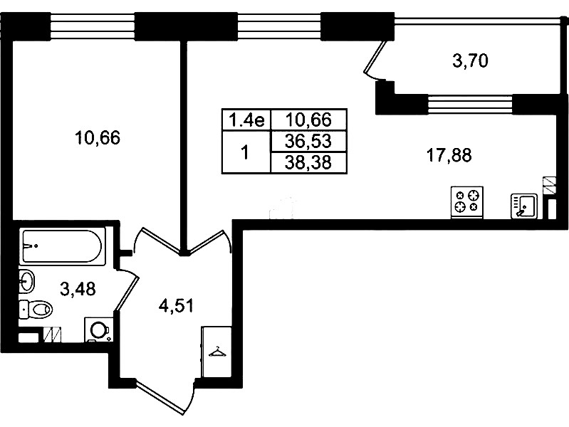 - Площадь36,53 м2