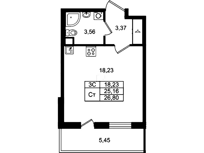 - Площадь25,16 м2