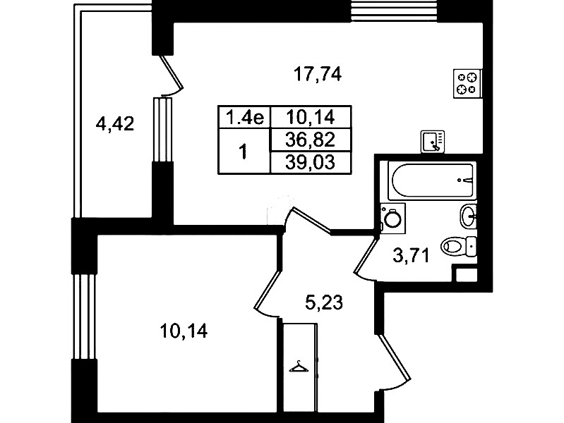 - Площадь кухни17,74 м2