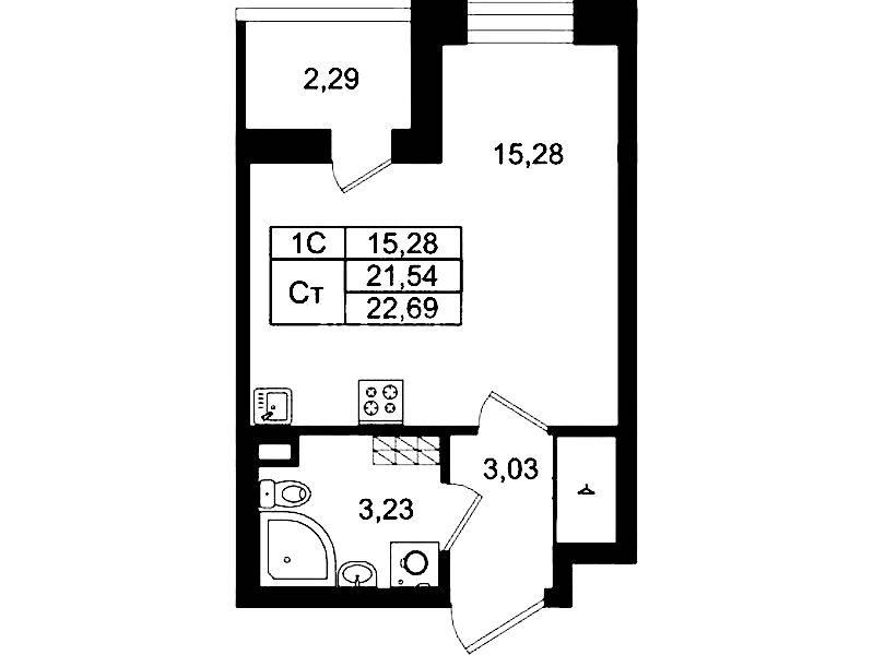 - Площадь21,54 м2
