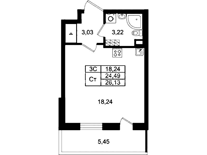 - Площадь24,49 м2