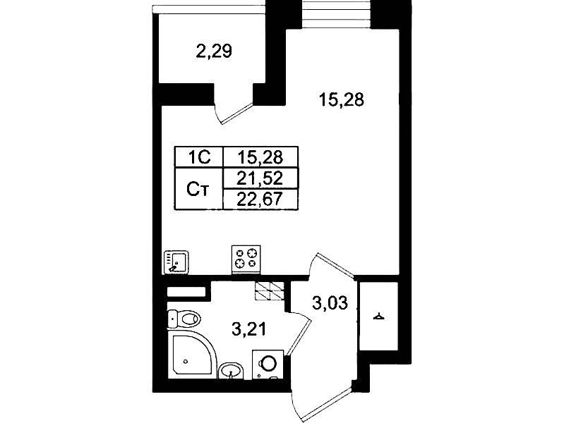 • Площадь21,52 м2