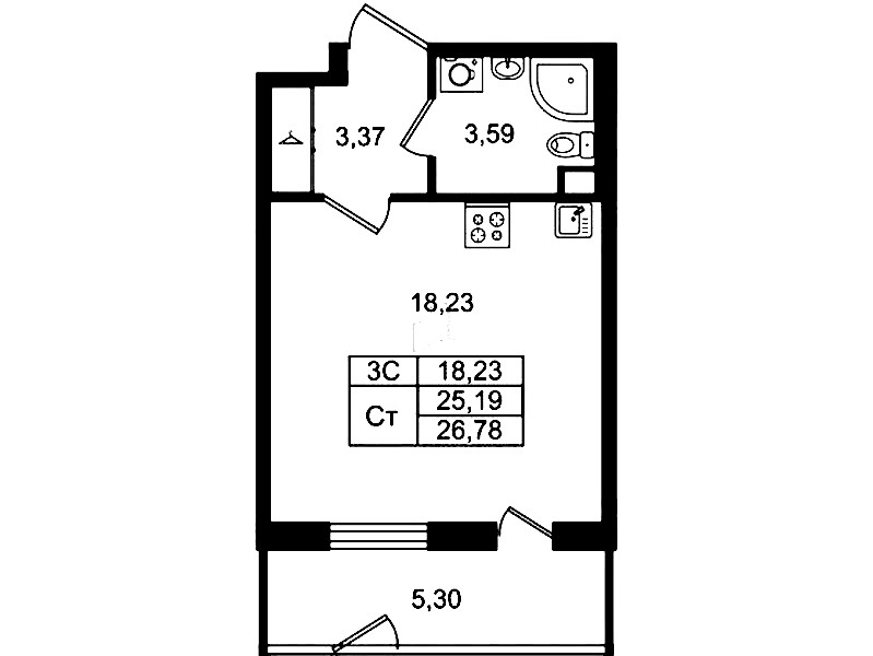 - Площадь25,19 м2