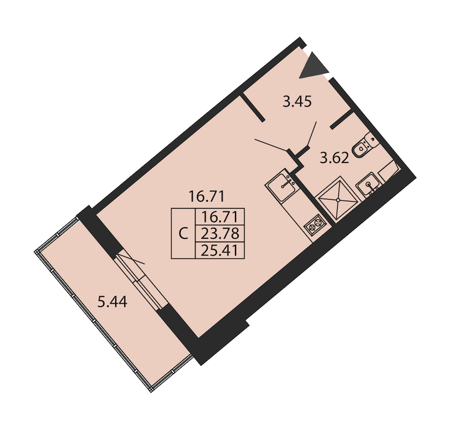 Квартира-студия на 1-ом этаже 23,78 кв.м