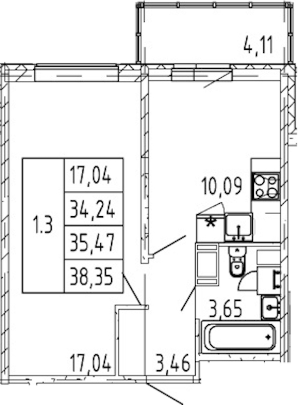 - Площадь34,24 м2
