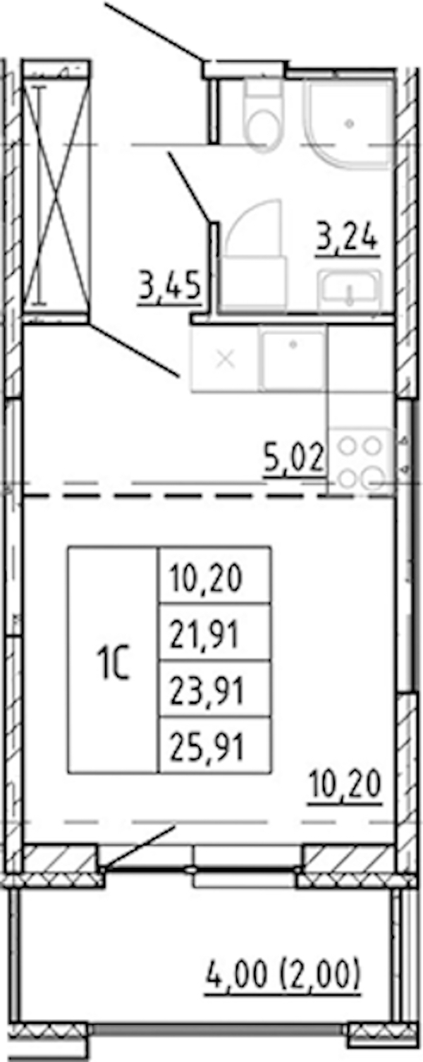 Квартира-студия на 4-ом этаже 21,91 кв.м