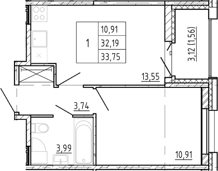 - Площадь32,19 м2