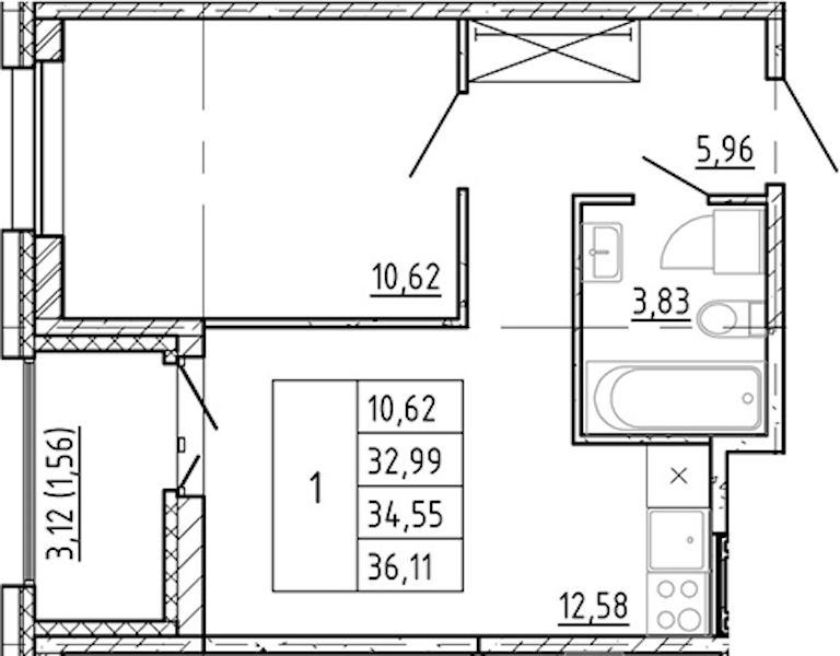 - Площадь32,99 м2