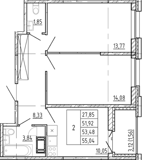 - Площадь51,92 м2