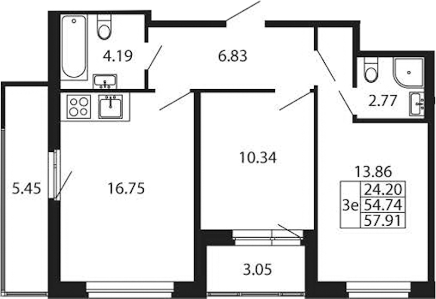 • Площадь54,74 м2