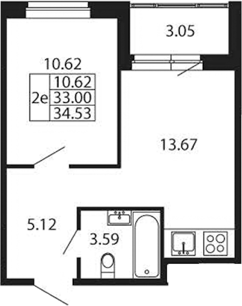 • Площадь кухни13,67 м2
