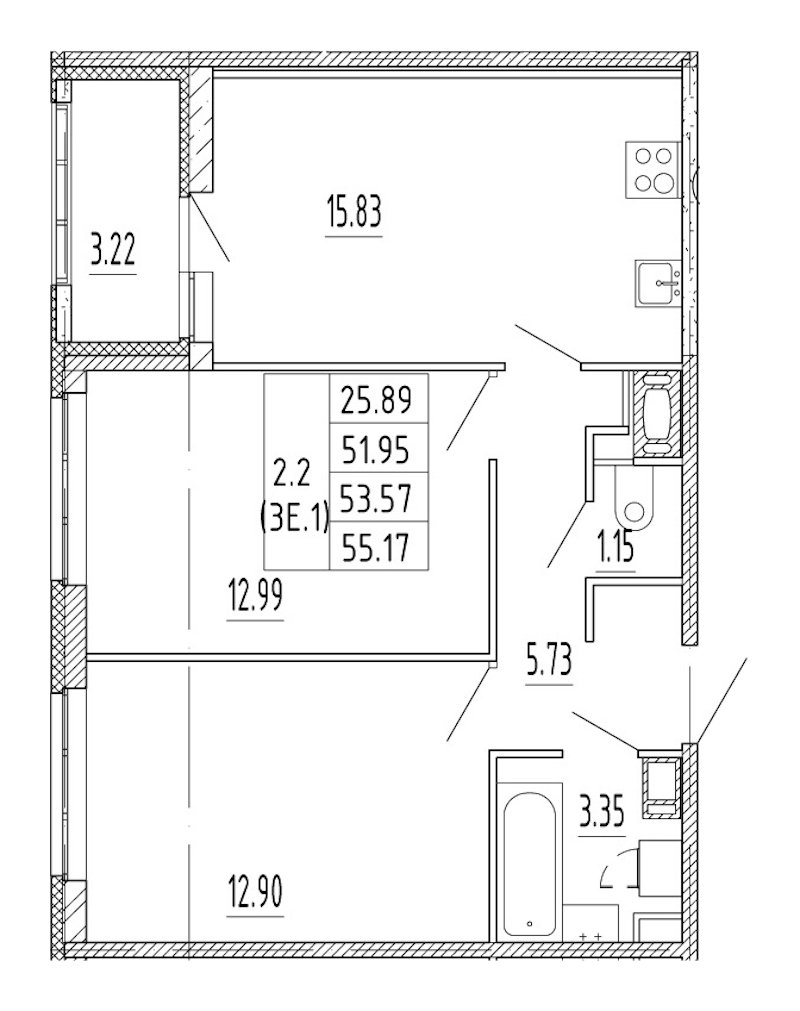 - Площадь51,95 м2