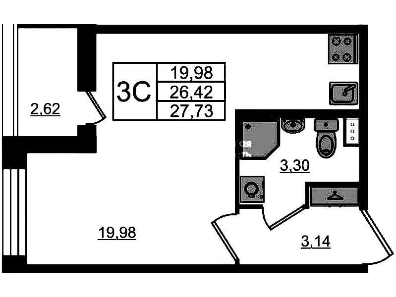 • Площадь26,1 м2