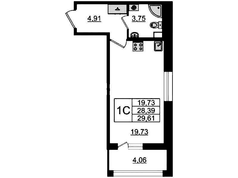 Квартира-студия на 1-ом этаже 27,8 кв.м
