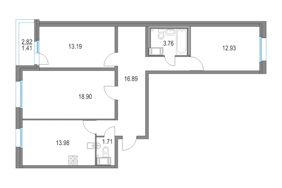 - Площадь кухни13,98 м2
