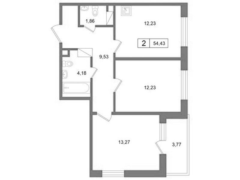 - Площадь54,43 м2