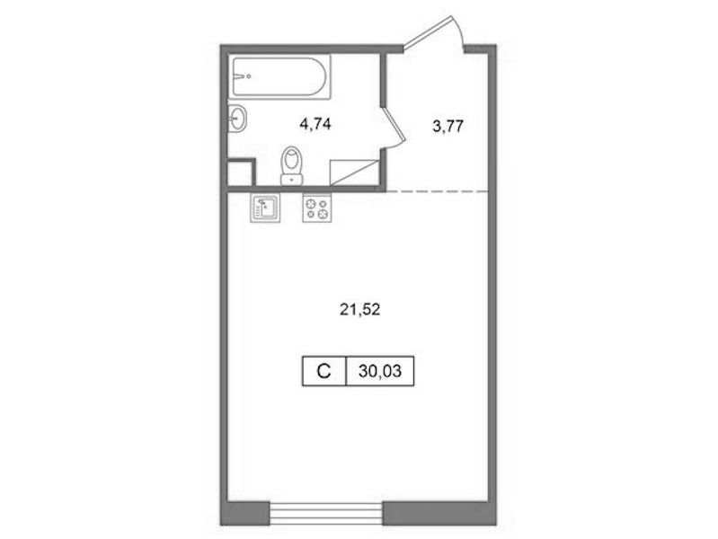 Квартира-студия на 3-ем этаже 30,03 кв.м