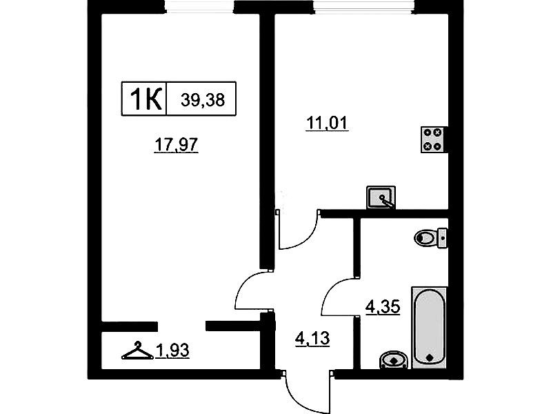 - Площадь38,8 м2