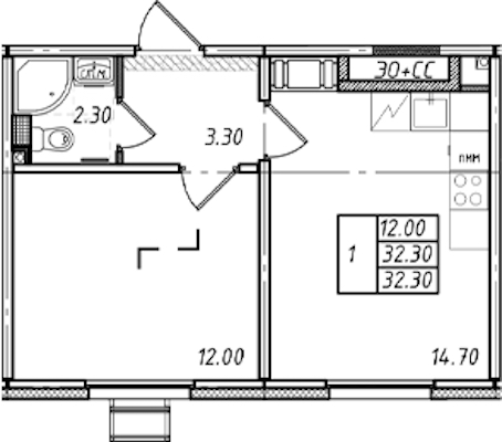 Однокомнатная квартира на 5-ом этаже 32,3 кв.м