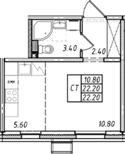 - Площадь22,2 м2