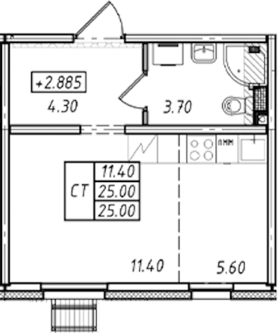 Квартира-студия на 2-ом этаже 25 кв.м