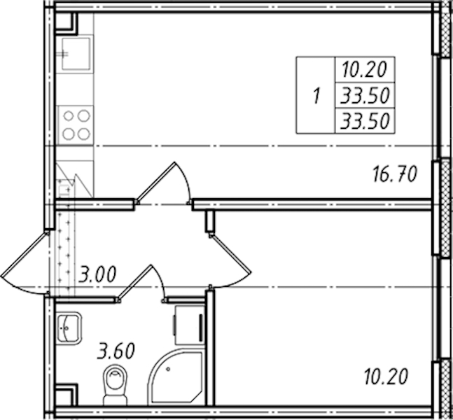 - Площадь33,5 м2
